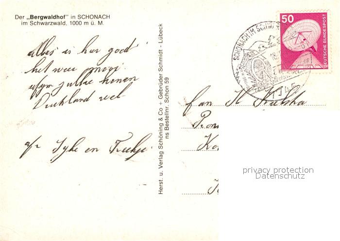 72932431 alte Postkarte Schonach Schwarzwald Der Bergwaldhof postalisch gelaufen Erhaltung siehe scans [WerneD78] KatCode: 11110008326055