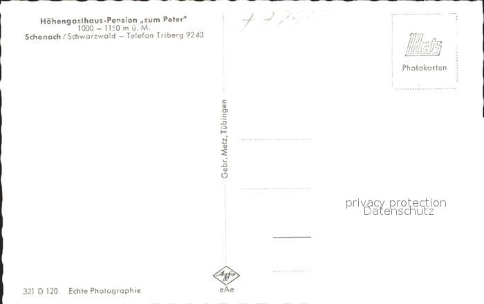 41759469 Schonach Schwarzwald Gasthaus Pension zum Peter postalisch nicht gelaufen Erhaltung siehe scans KatCode: 11110008326055