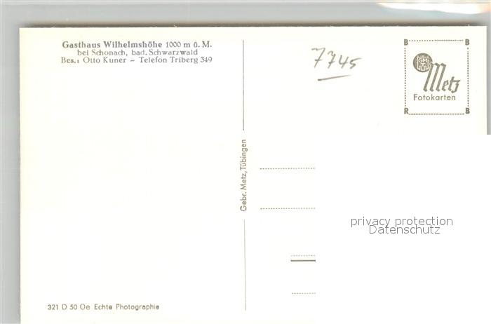 43292094 Schonach Schwarzwald Gasthaus Wilhelmshoehe postalisch nicht gelaufen Erhaltung siehe scans [KathaD81] KatCode: 11110008326055