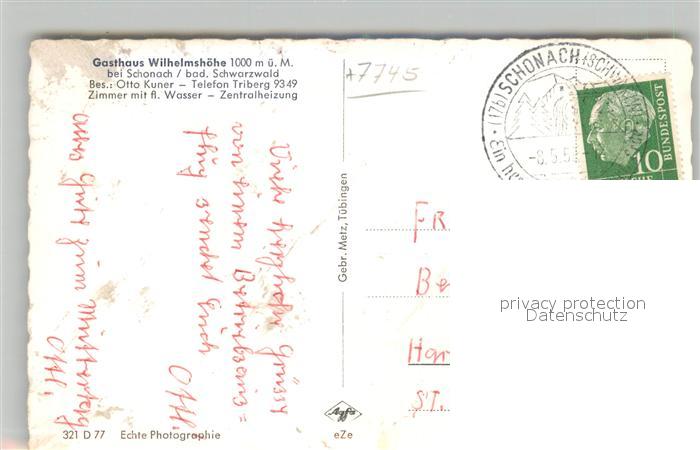 43291133 alte Postkarte Schonach Schwarzwald Gasthaus Wilhelmshoehe postalisch gelaufen Erhaltung siehe scans [KathaD81] KatCode: 11110008326055