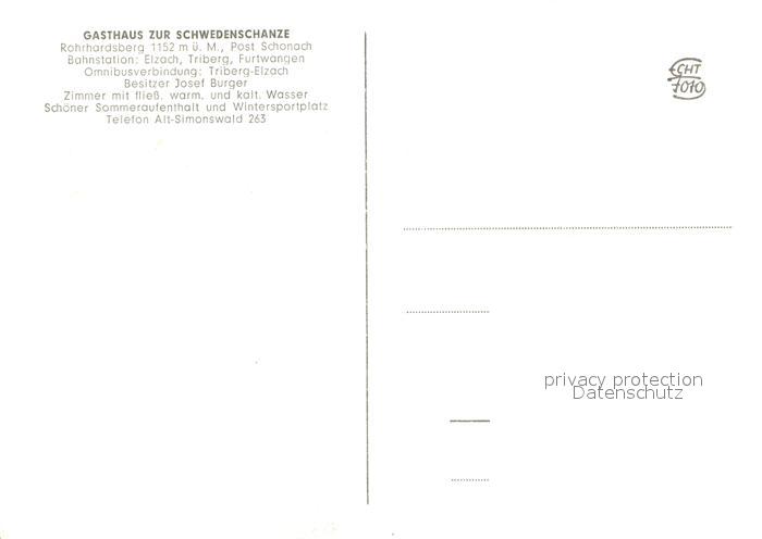 73644579 Schonach Schwarzwald Gasthaus zur Schwedenschanze Gaststube Rohrhardsberg postalisch nicht gelaufen Erhaltung siehe scans [FriedD77] KatCode: 11110008326055