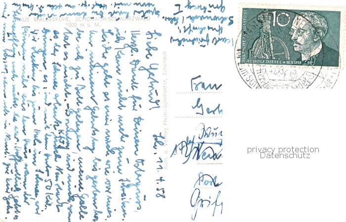 73831711 alte Postkarte Schonach Schwarzwald Haus Waldesruhe postalisch gelaufen Erhaltung siehe scans [WerneD78] KatCode: 11110008326055