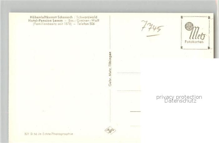 43291137 Schonach Schwarzwald Hotel Pension Lamm postalisch nicht gelaufen Erhaltung siehe scans [KathaD81] KatCode: 11110008326055