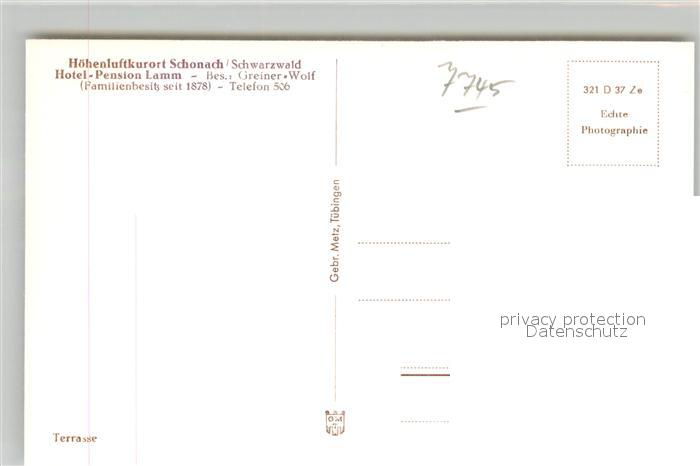 43291151 Schonach Schwarzwald Hotel Pension Lamm Terrasse postalisch nicht gelaufen Erhaltung siehe scans [KathaD81] KatCode: 11110008326055