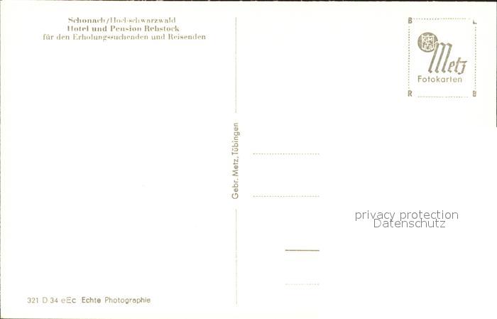 41759495 Schonach Schwarzwald Hotel Pension Rebstock postalisch nicht gelaufen Erhaltung siehe scans KatCode: 11110008326055