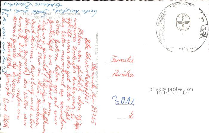 72081859 alte Postkarte Schonach Schwarzwald Ortsansicht mit Kirche Luftkurort postalisch gelaufen Erhaltung siehe scans KatCode: 11110008326055