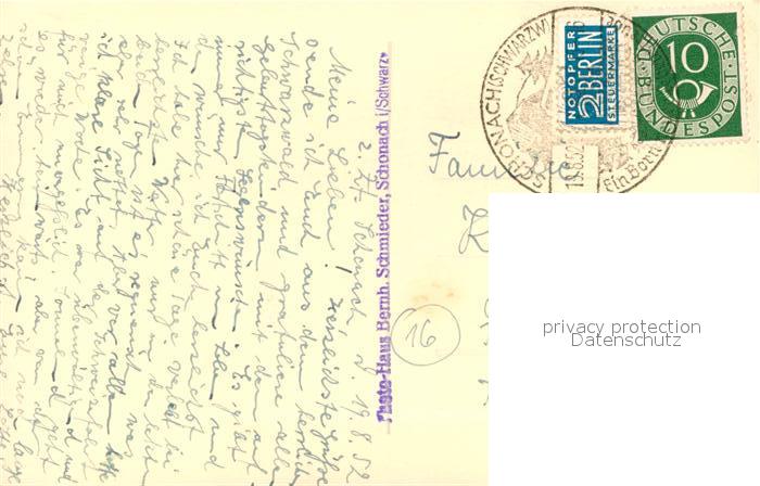 73271932 alte Postkarte Schonach Schwarzwald Panorama postalisch gelaufen Erhaltung siehe scans [FriedD77] KatCode: 11110008326055