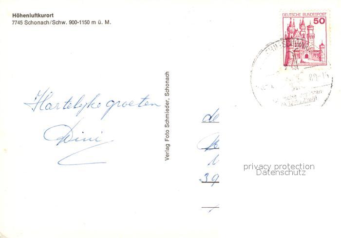 73306141 alte Postkarte Schonach Schwarzwald Panorama postalisch gelaufen Erhaltung siehe scans [WerneD78] KatCode: 11110008326055