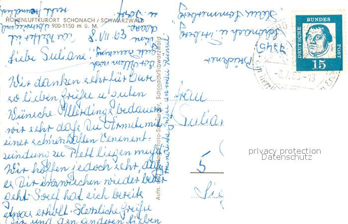 43348050 alte Postkarte Schonach Schwarzwald Paradies postalisch gelaufen Erhaltung siehe scans [KathaD81] KatCode: 11110008326055