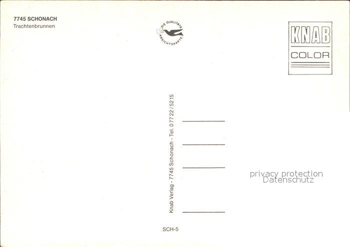 72519672 Schonach Schwarzwald Trachtenbrunnen postalisch nicht gelaufen Erhaltung siehe scans KatCode: 11110008326055
