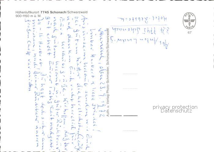 72178714 Schonach Schwarzwald Triberg postalisch nicht gelaufen Erhaltung siehe scans KatCode: 11110008326055