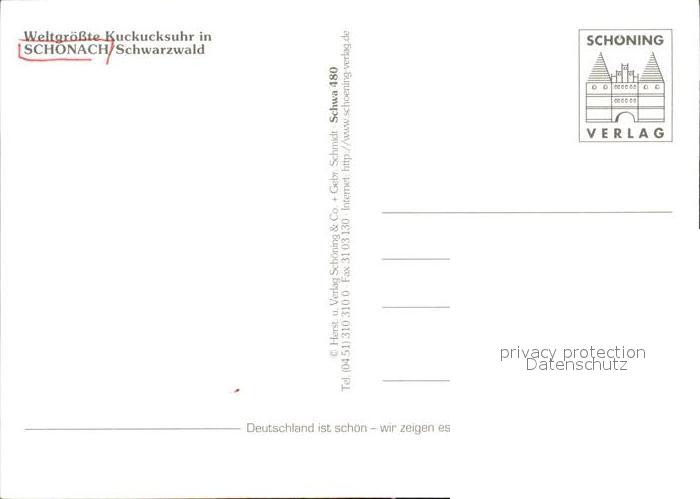 72532584 Schonach Schwarzwald Weltgroesste Kuckucksuhr postalisch nicht gelaufen Erhaltung siehe scans [WerneD78 kt116box] KatCode: 11110008326055