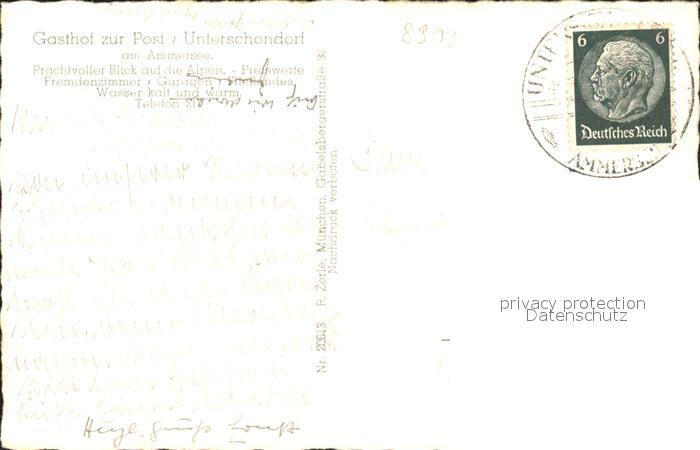 31702430 alte Postkarte Schondorf Ammersee Gasthof zur Post Unterschondorf postalisch gelaufen Erhaltung siehe scans KatCode: 11110009181139