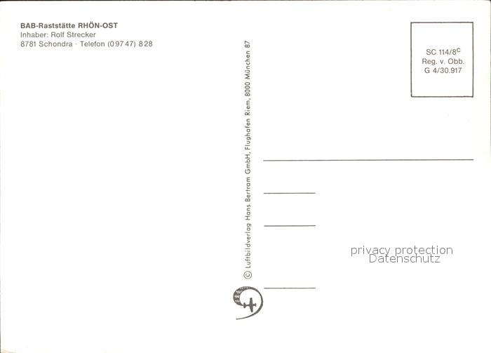 72495461 Schondra BAB Rasttaette Rhoen-Ost Fliegeraufnahme postalisch nicht gelaufen Erhaltung siehe scans KatCode: 11110009672149