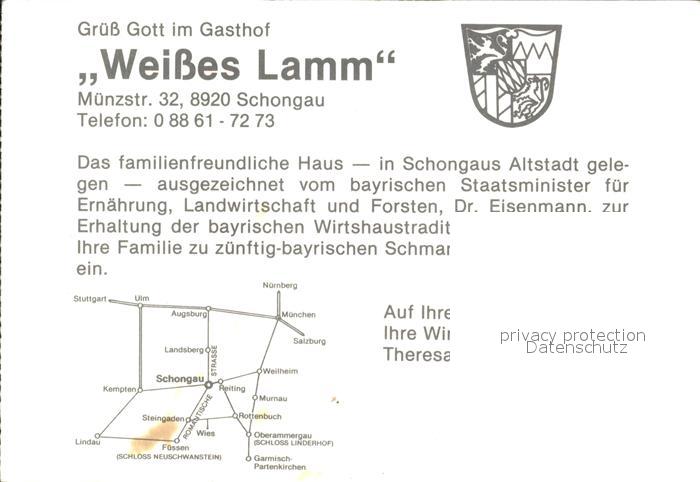 72263090 Schongau Gasthaus Weisses Lamm postalisch nicht gelaufen Werbekarte (keine Postkarte) Erhaltung siehe scans KatCode: 11110009190148