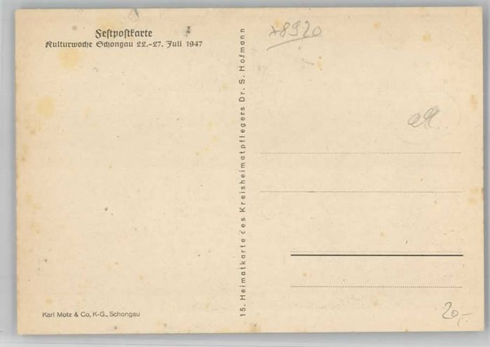 40244785 Schongau KünstlerFahrenburch Festpostkarte KatCode 11110009190148