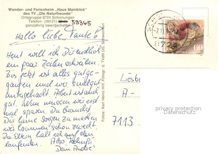 73719364 alte Postkarte Schonungen Naturfreundehaus Mainblick Innen- und Aussenansichten postalisch gelaufen Erhaltung siehe scans [LiesaD40] KatCode: 11110009678174