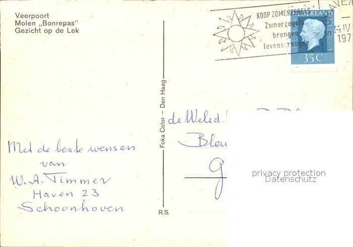 old postcard Schoonhoven Molen Bonrepas Veerpoort postalisch gelaufen Erhaltung siehe scans