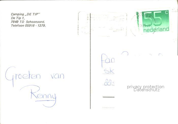 old postcard Schoonoord Camping De Tip postalisch gelaufen Erhaltung siehe scans