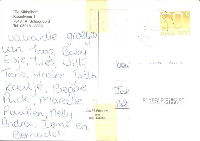 old postcard Schoonoord De Kibbelhof Gastraum postalisch gelaufen Erhaltung siehe scans