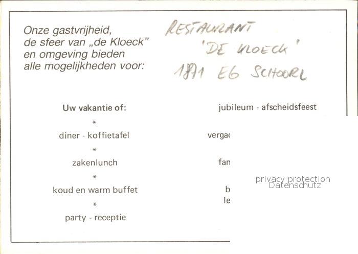 Schoorl Restaurant De Kloeck postalisch nicht gelaufen Werbekarte (keine Postkarte) Erhaltung siehe scans