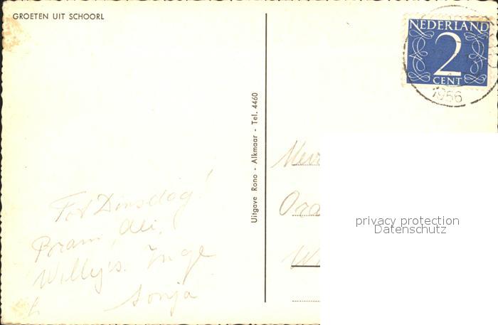 old postcard Schoorl Strassenpartie Kirche postalisch gelaufen Erhaltung siehe scans