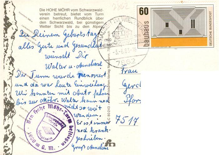 73928268 alte Postkarte Schopfheim Hohe Moehr mit Schweizer Zentralalpen postalisch gelaufen Erhaltung siehe scans [WerneD78] KatCode: 11110008336081