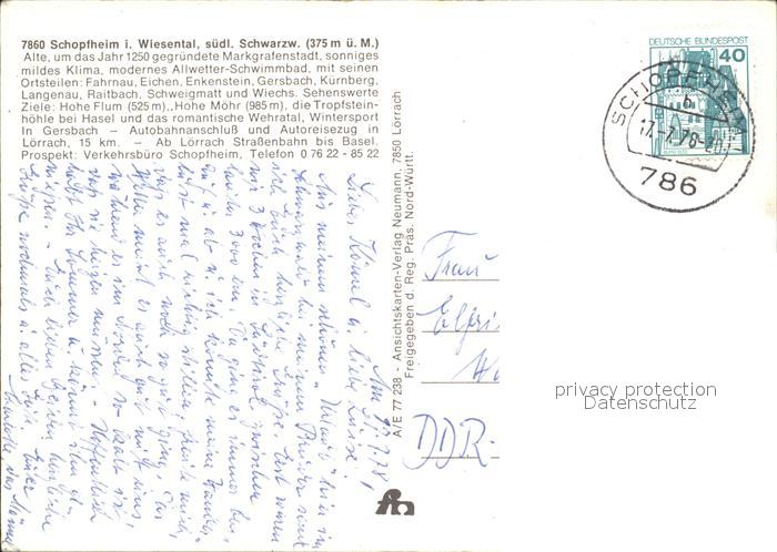 72109749 alte Postkarte Schopfheim im Wiesental Fliegeraufnahme postalisch gelaufen Erhaltung siehe scans KatCode: 11110008336081