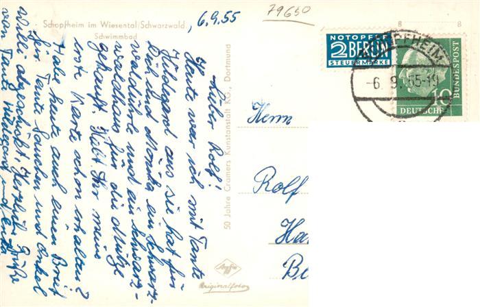 73940290 alte Postkarte Schopfheim Schwimmbad postalisch gelaufen Erhaltung siehe scans [WerneD78] KatCode: 11110008336081