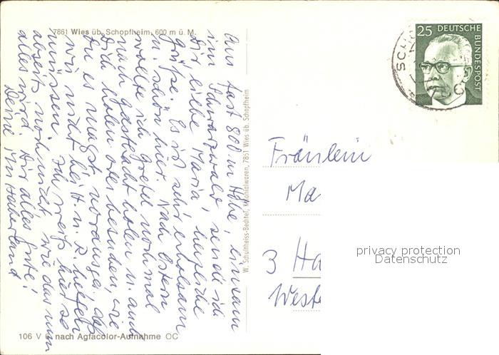 72575024 alte Postkarte Schopfheim Wies Ansicht postalisch gelaufen Erhaltung siehe scans [KathaD79] KatCode: 11110008336081