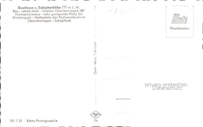 41760298 Schopfloch Lenningen Gasthaus zur Schlattenhoehe postalisch nicht gelaufen Erhaltung siehe scans KatCode: 11110008116079