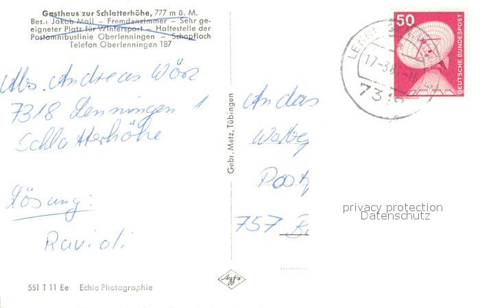 73722631 alte Postkarte Schopfloch Lenningen Gasthaus zur Schlatterhoehe Landschaftspanorama postalisch gelaufen Erhaltung siehe scans [FriedD77] KatCode: 11110008116079
