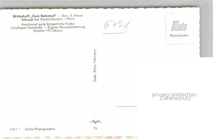42721689 Schopp Wirtschaft zum Bahnhof postalisch nicht gelaufen Erhaltung siehe scans [KathaD79] KatCode: 11110007335204