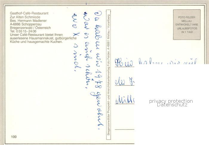 73161334 Schoppernau Vorarlberg Gasthof Cafe Restaurant Zur alten Schmiede postalisch nicht gelaufen Erhaltung siehe scans [KathaD81] KatCode: 11390341080233