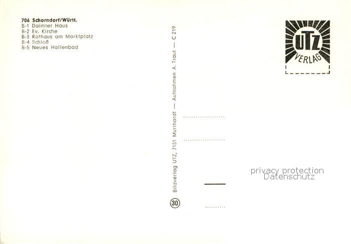 73600166 Schorndorf Wuerttemberg Daimler Haus Kirche Rathaus Marktplatz Fachwerkhaeuser Brunnen Schloss Hallenbad postalisch nicht gelaufen Erhaltung siehe scans [FriedD77] KatCode: 11110008119067