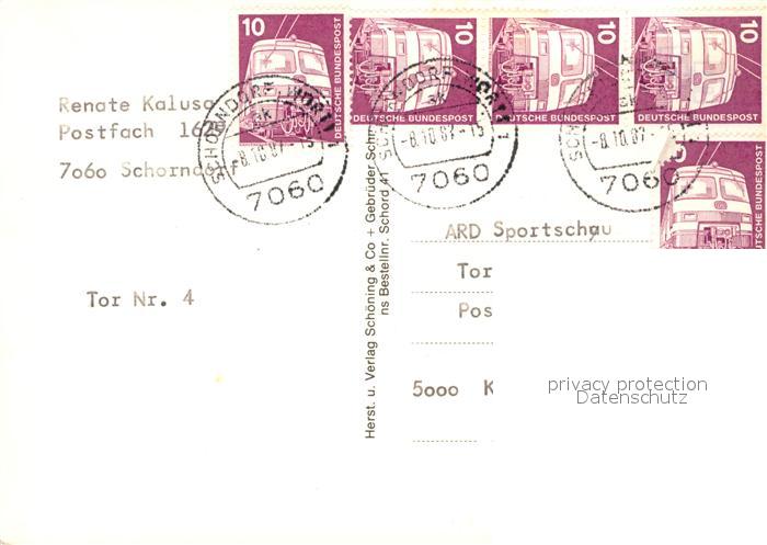 73600079 alte Postkarte Schorndorf Wuerttemberg Daimlers Geburtshaus Marktplatz Altstadt Fachwerkhaeuser Kirche Brunnen postalisch gelaufen Erhaltung siehe scans [FriedD77] KatCode: 11110008119067