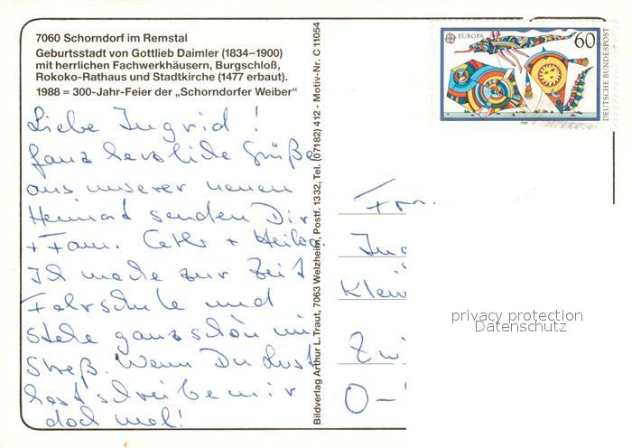 73600164 Schorndorf Wuerttemberg Geburtsstadt Gottlieb Daimler Altstadt Fachwerkhaeuser Brunnen Schorndorfer Weiber Gemaelde Festungsgraben Schloss Innenhof postalisch nicht gelaufen Erhaltung siehe scans [FriedD77] KatCode: 11110008119067