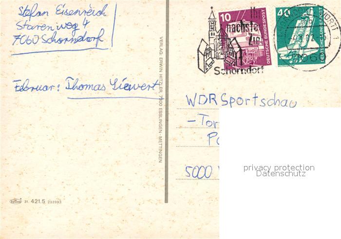 73600080 alte Postkarte Schorndorf Wuerttemberg Geburtsstadt Gottlieb Daimlers Altstadt Fachwerkhaeuser Kirche Panorama Wappen postalisch gelaufen Erhaltung siehe scans [FriedD77] KatCode: 11110008119067