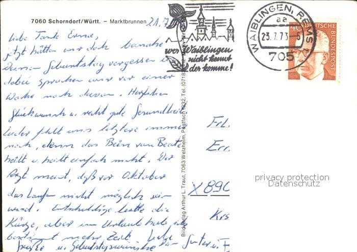 72543435 alte Postkarte Schorndorf Wuerttemberg Markt Brunnen postalisch gelaufen Erhaltung siehe scans [WerneD78 kv016box] KatCode: 11110008119067