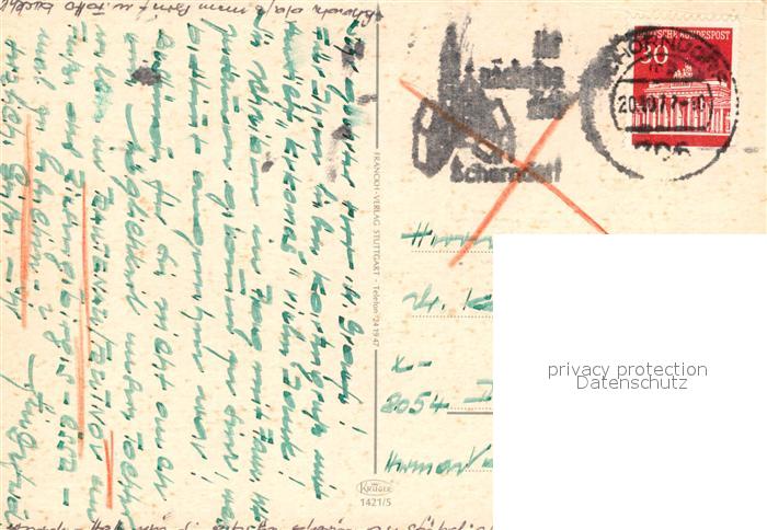 73600169 alte Postkarte Schorndorf Wuerttemberg Stadtpanorama Altstadt Fachwerkhaeuser Kirche Marktplatz Geburtsstadt Gottlieb Daimlers Wappen postalisch gelaufen Erhaltung siehe scans [FriedD77] KatCode: 11110008119067