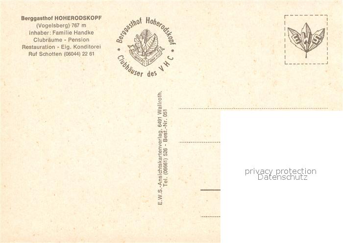 73004181 Schotten Hessen Berggasthof Hoherodskopf postalisch nicht gelaufen Erhaltung siehe scans [KathaD81] KatCode: 11110006535016