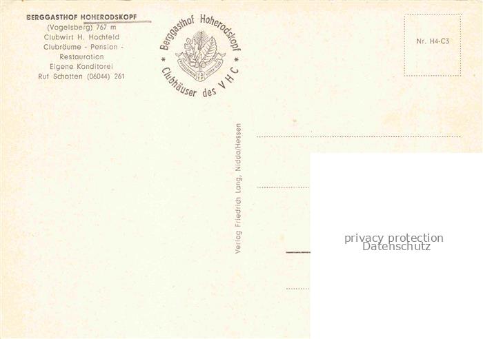 74100721 Schotten Hessen Berggasthof Hoherodskopf am Vogelsberg Sender postalisch nicht gelaufen Erhaltung siehe scans [FriedD77] KatCode: 11110006535016