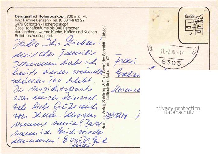 74137295 alte Postkarte Schotten Hessen Berggasthof Hoherodskopf Gastraeume Terrasse Turmrestaurant postalisch gelaufen Erhaltung siehe scans [WerneD78] KatCode: 11110006535016