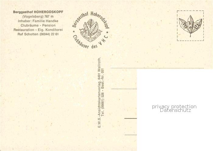 72777819 Schotten Hessen Berggasthof Hoherodskopf Vogelsberg postalisch nicht gelaufen Erhaltung siehe scans [LiesaD40] KatCode: 11110006535016