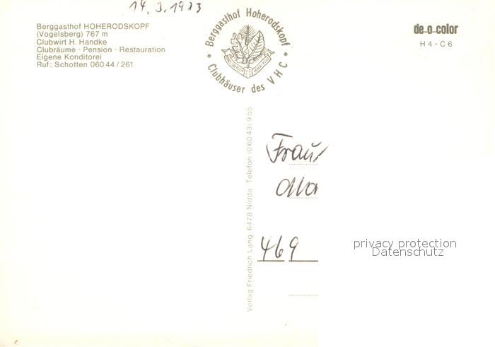 72946507 Schotten Hessen Berggasthof Hoherosdskopf postalisch nicht gelaufen Erhaltung siehe scans [LiesaD40] KatCode: 11110006535016