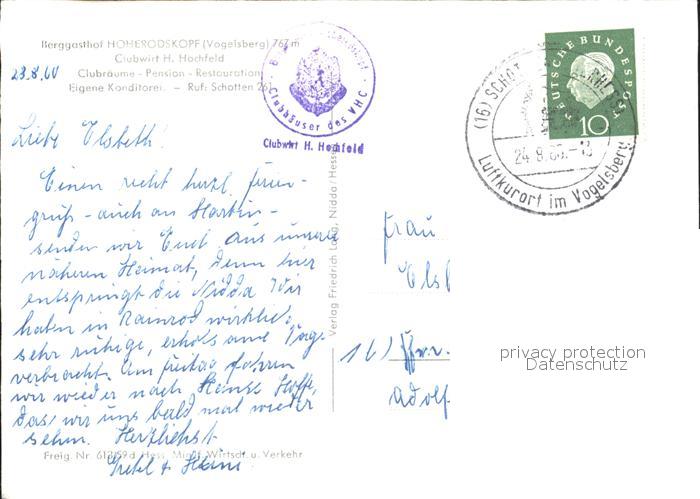 72130180 alte Postkarte Schotten Hessen Berggaststaette Hoherodskopf postalisch gelaufen Erhaltung siehe scans KatCode: 11110006535016