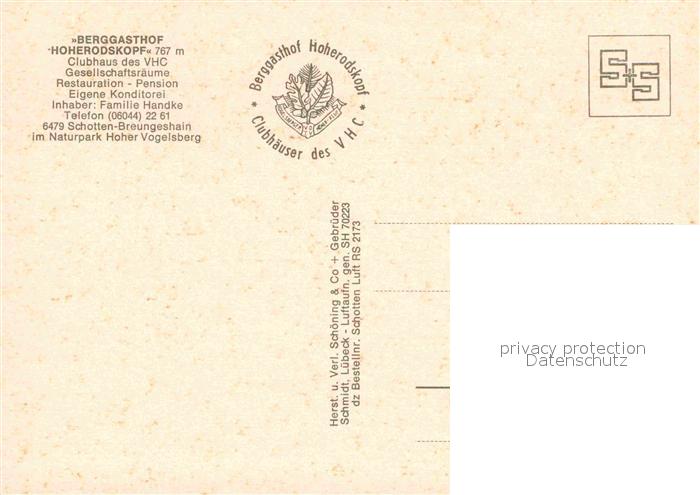 72777817 Schotten Hessen Breungesheim Berggasthof Hoherodskopf postalisch nicht gelaufen Erhaltung siehe scans [LiesaD40] KatCode: 11110006535016
