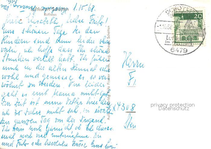 73093187 alte Postkarte Schotten Hessen Fachwerk Rathaus postalisch gelaufen Erhaltung siehe scans [LiesaD40] KatCode: 11110006535016