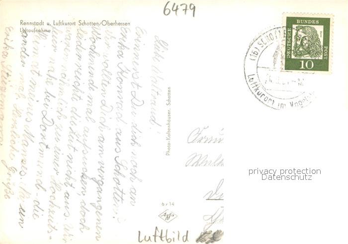 73707102 alte Postkarte Schotten Hessen Fliegeraufnahme Gesamtansicht postalisch gelaufen Erhaltung siehe scans [LiesaD40] KatCode: 11110006535016