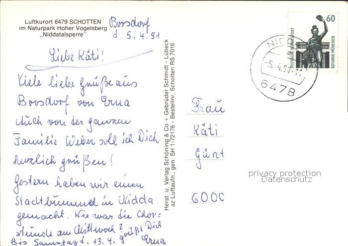 72493038 alte Postkarte Schotten Hessen Fliegeraufnahme Niddatalsperre postalisch gelaufen Erhaltung siehe scans KatCode: 11110006535016